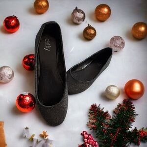 Flats ballet shimmery black casual dressy festive holidays costume photos