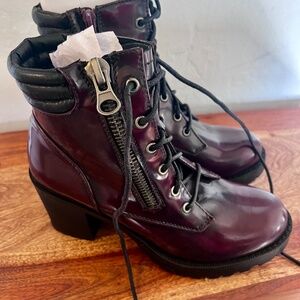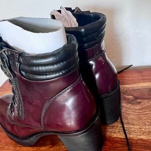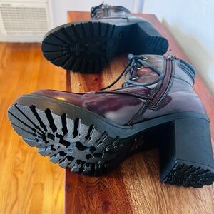 Cathy Jean Patent Leather Lace Up Combat Boots