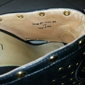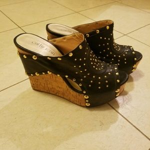 Cathy Jean, wedge heel, leather with gold studs. Super comfortable! Size 10 but fits like a 9.
