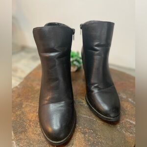 Cathy Jean~Blk Faux Leather Ankle Boot~Side Zip~Double Buckle~Cuban Heel~Size 7