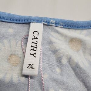 Cathy Womens Top 2XL Pullover Floral Sunflower Print Stretch Short Sleeve NWT