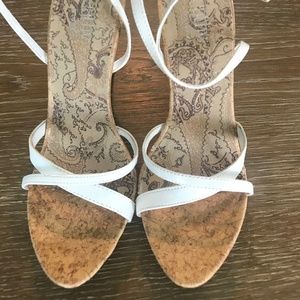 Cathy by Cathy Jean Strappy White & Cork Leather Heels Sz 7