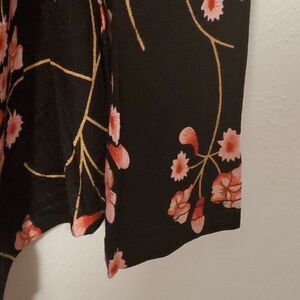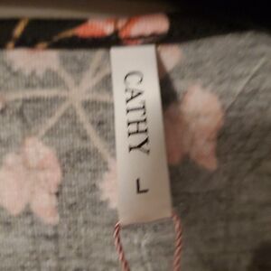 new with tags Cathy woman blouse size L black with floral allover neck lace trim length 26"