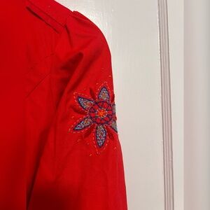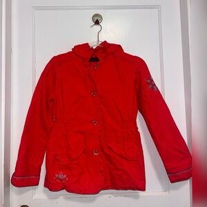 Catimini Lightweight Red Boho Embroidered Flower Jacket Size 12 YO
