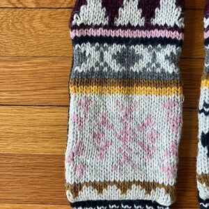 Catimini Yellow Maroon French Knit Geometric Tribal Fleece Lined Scarf