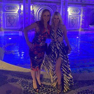 Cativa Animal Print Floor Length Dress with Gold Chain Waist Trim Detail