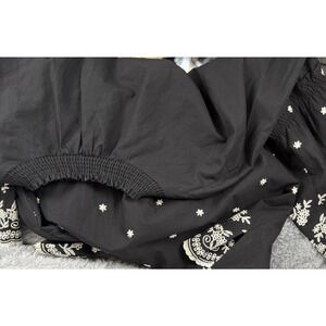 Cato 1946 Sz 18/20 2X Black White Floral Embroidered Blouse V Neck Cotton Boho