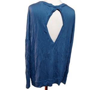 Cato 2xl Blouse Blue Long Sleeve Top Shirt Keyhole Back Woman Ribbed Col…