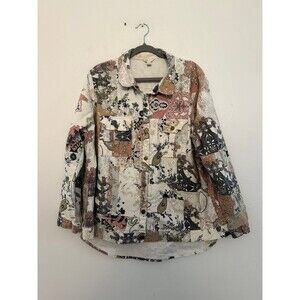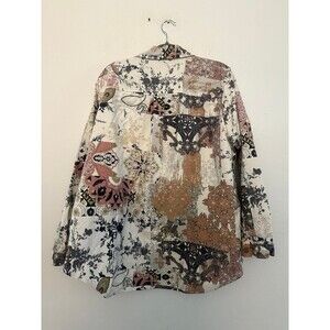 Cato Abstract Floral 22/24W Plus Size White Cotton Button Up Bohemian Jacket