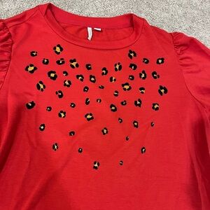 In great shape! Only worn a few times! Cute red color with fun animal print pattern! Perfect for fall and winter! Offers always welcome!