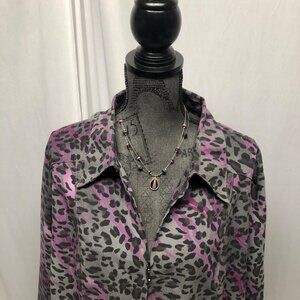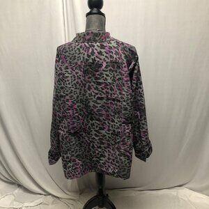 Cato Animal Print Jacket Womens 22-24W Gray Purple Full Zip Collared Long Sleeve