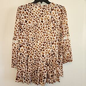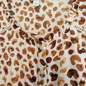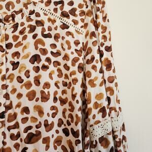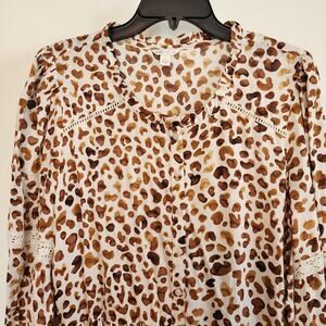 Cato Animal Print Top Tunic Lace Sleeve Ruffle Hem Button Front Lightweight LG