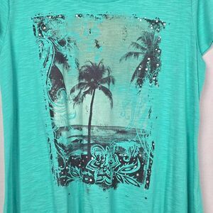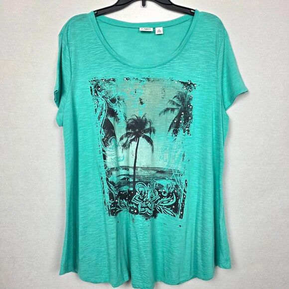 Cato Aqua Palm Tree Graphic Top Women’s XL