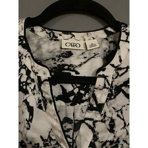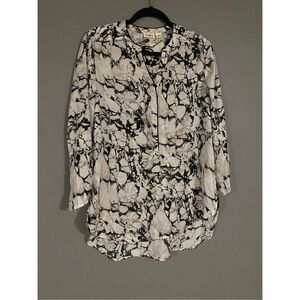 Cato Black And White Marble Long Sleeve High Low Top Size M NWT