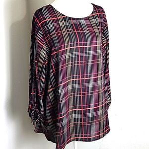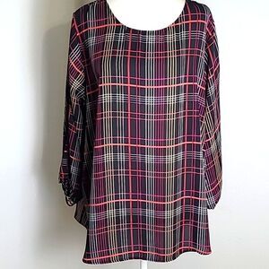 Cato Black Blouse with Red & White Lines & Cut-outs on the Sleeves, Size 18/20W