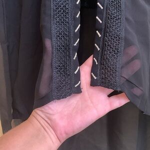 Cato Fashions | Black Sheer Embroidered & Bead Tassel Kimono Cardigan In size XS.