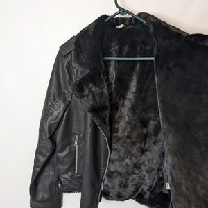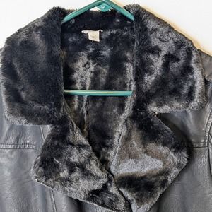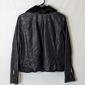 Cato Black Fleece Lined Faux Leather Bomber Jacket Size Large