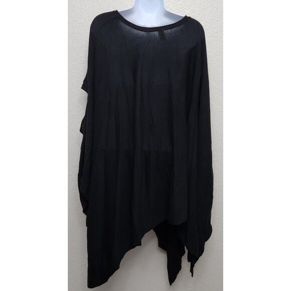 Cato Black Round Neck Poncho Sweater One Size Flowy Shark Bite Hem Soft