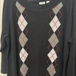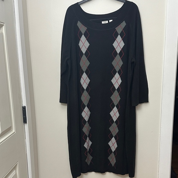 Cato Black Sweater Dress with Grey and Red Argyle pattern. Women's size 22/24W, Excellent Used Condition