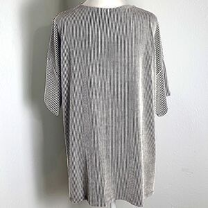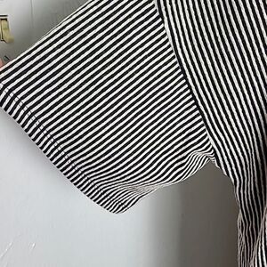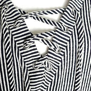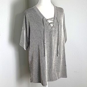 Cato Black & White Stripe Top with Lace-up Neckline, Size 14/16W