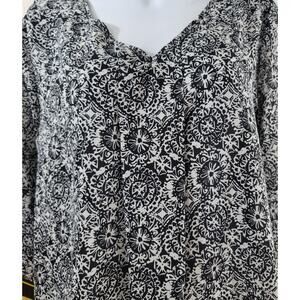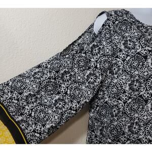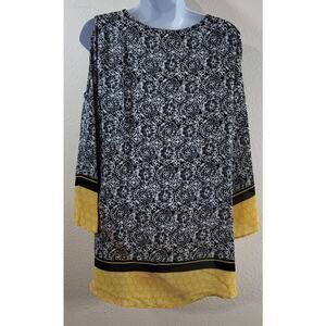 Cato Black White Yellow Floral Print Cold Shoulder Top Large Lightweight Flowy