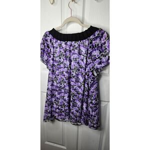 Cato Blouse Woman 22/24W Sheer With Lining - Purple/Black Sheer Top, Cap Sleeve. Black Scoop Neck. White Lined