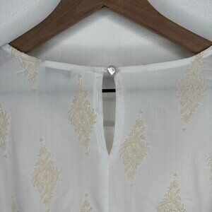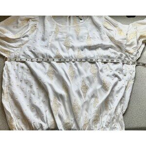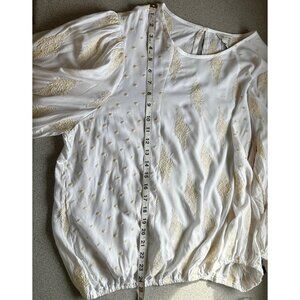 Cato Blouse Women 18/20W Long Balloon Sleeve White Cream Embroidered Elastic Hem