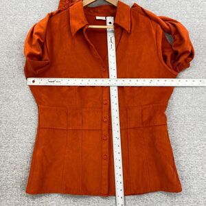 Cato Blouse Womens Large Orange Faux Suede V Neck Button Up Long Sleeve Fitted