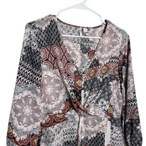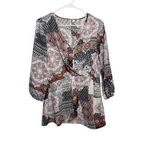Cato Blouse Women's Large V-Neck 3/4 Sleeve Boho Colorful Twist 3/4 Sleeve