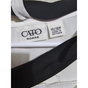 Cato Blouse Womens Plus Size 14/16w White Black W Tie Neck Semi Sheer(899)