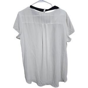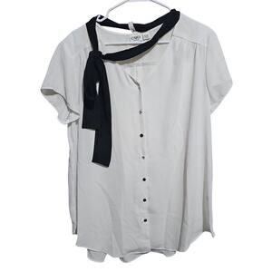 Cato Blouse Womens Plus Size 14/16w White Black W Tie Neck Semi Sheer Top (899)