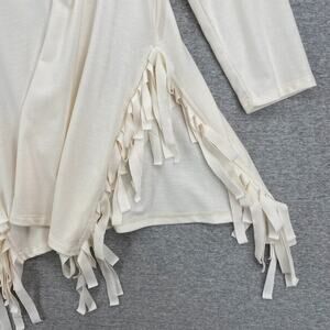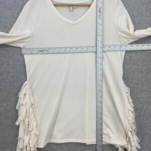 Cato Blouse Womens XS Cream Fringed Split Sides VNeck 3/4 Sleeve Stretch