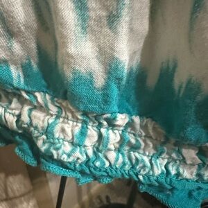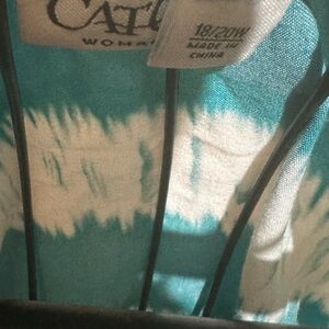 Cato blue and white short sleeve blouse. Has a tie in the front. The sleeves and the bottom have a stretchy hem. Size 18/20 W.