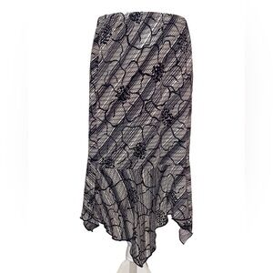 Cato Brand Ladies Asymmetrical Ruffle Skirt with Floral Pattern in Black & Tan