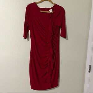 Cato Burgundy 3/4 Sleeve Dress ruffles Size 12 Party Holiday Date Night Maroon