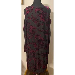 Cato Burgundy Burnout Velvet Long Sleeve Cold Shoulder Midi Dress Size Large