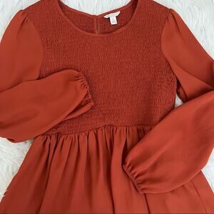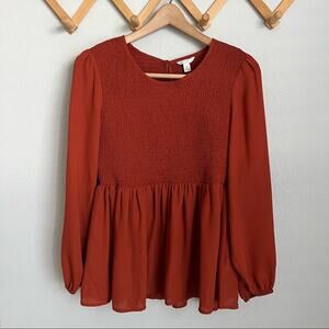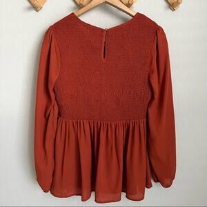 Cato Burnt Orange Peplum Blouse with Ruching Size Small