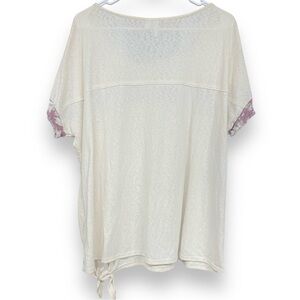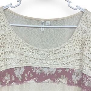 Everyday is a good day for crochet and this pullover style is here for it with a scoop neckline, crochet yoke, floral print and tie hem for a no-tuck finish that makes getting dressed for those denim days easy-peasy.