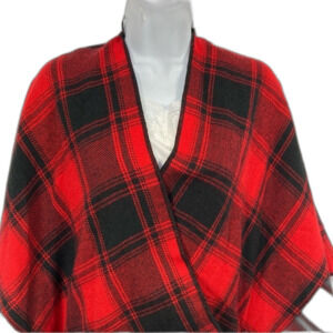 Cato Cape OS Red + Black Oversized Tartan Plaid Cape Acrylic Ties at Waist Warm