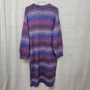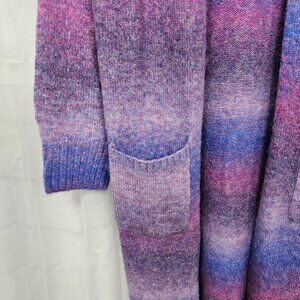 Cato Cardigan Sweater Purple Striped Longline Open Knit Boho Midi M