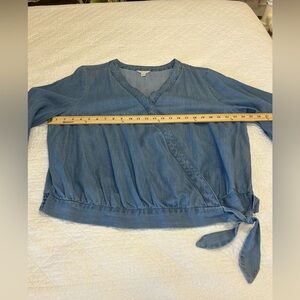 - Chambray/Denim Wrap Style Top w/ Elastic in the Back