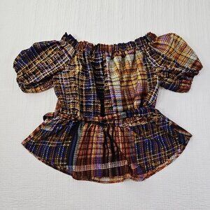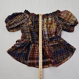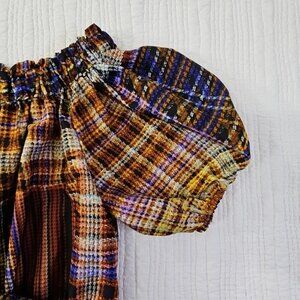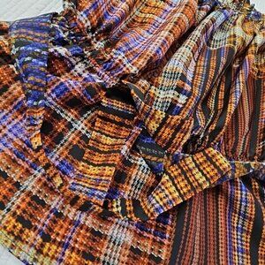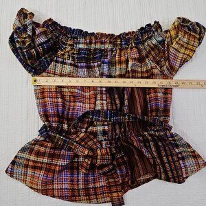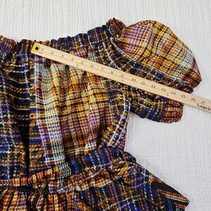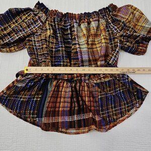 Cato Cold Shoulder Boho Blouse XL Jewel Tones Puff Sleeves Belted EUC Fairycore