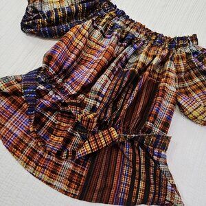 The Cato Cold Shoulder Boho Blouse in XL size is a stylish and versatile top perfect for various occasions such as travel, party, casual wear, and work. The jewel tones and puff sleeves add a touch of bohemian flair, while the belted waist gives a flattering fit.