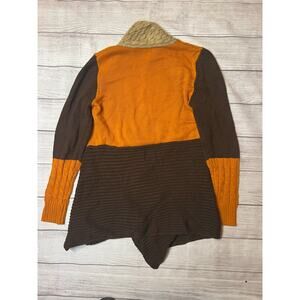 Cato Color Block Open Front Cardigan Sweater Brown Orange Tan Women’s Size S
