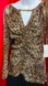 This chic long-sleeved, sexy leopard-print blouse boasts a V-neck and ruffled details, creating a sophisticated look. The top features a ruched or gathered section around the waist and chest, resulting in a fitted silhouette. Similar styles often incorporate a keyhole neckline, faux wrap design, or bell sleeves. This blouse showcases a flattering fit and chic design. Perfect for bold fashion statements.