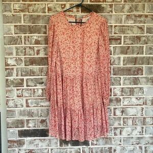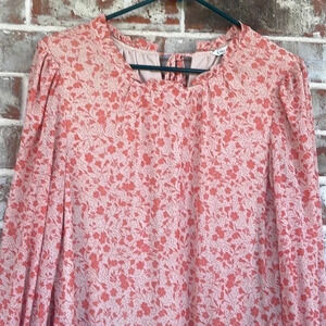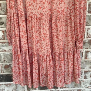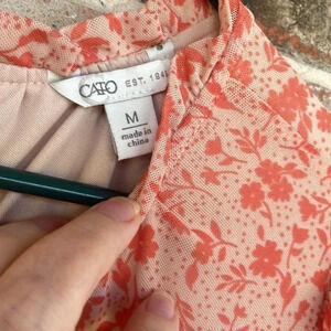 Cato Coral Floral Double Ruffle Keyhole Tie Back Dress