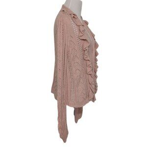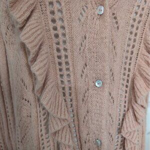 Cato Crochet Ruffle Cardigan Womens Size XL Baby Pink Long Sleeve Sweater