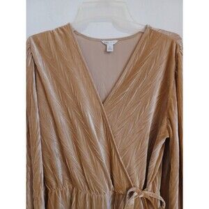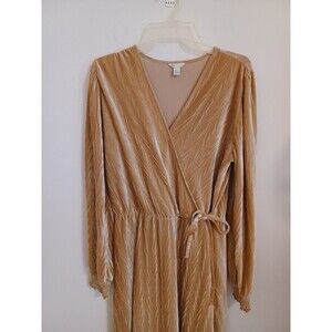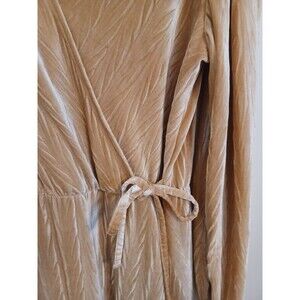 Cato Crushed Velvet Faux Wrap Dress M Gold Longsleeve Smocked Boho Romantic