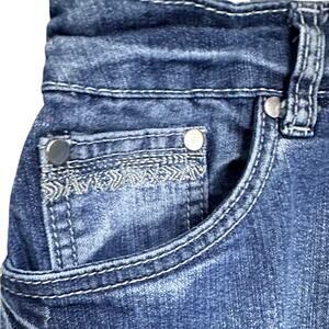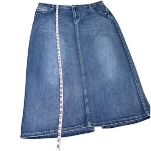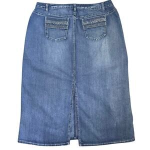 Cato Denim Midi Skirt 18W Blue Stretch Jean Skirt Back Slit Embroidered Pockets
