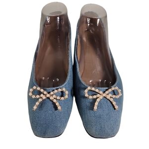 These flats ate in great condition, showing only light wear on the soles. They have sweet little faux pearl bows at the toes and a light wash denim color, perfect for warmer months.